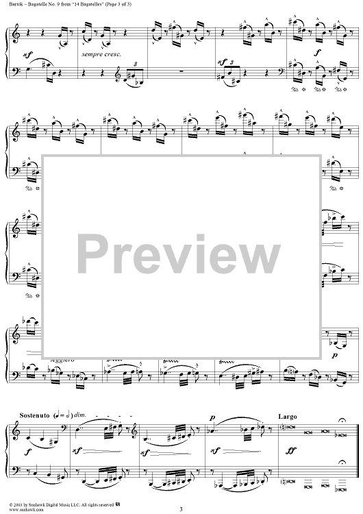 Digital Sheet Music for Bagatelle No. 9 "Allegretto grazioso" by Bela Bartok scored for Piano Solo; id:293708