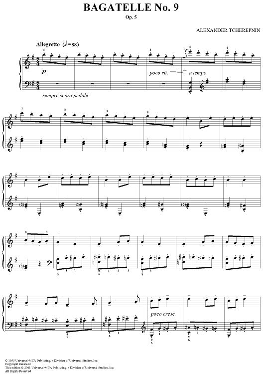 "Bagatelle No. 9" Sheet Music by Alexander Tcherepnin