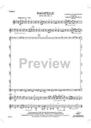 Digital Sheet Music for Bagatelle, Opus 119, No. 1 - Violin 1 by Ludwig van Beethoven, Carrie Lane Gruselle scored for String Orchestra; id:437040