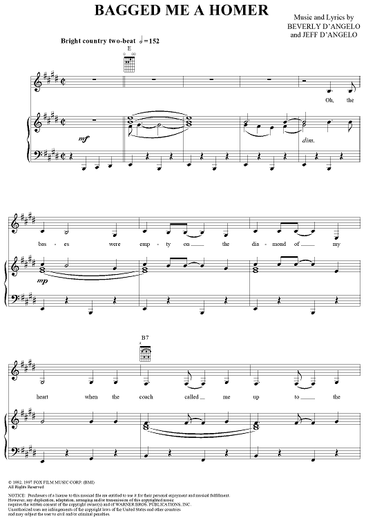 Digital Sheet Music for Bagged Me a Homer by Beverly D'Angelo, Jeff D'Angelo scored for Piano/Vocal/Chords; id:293536