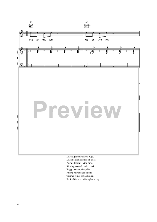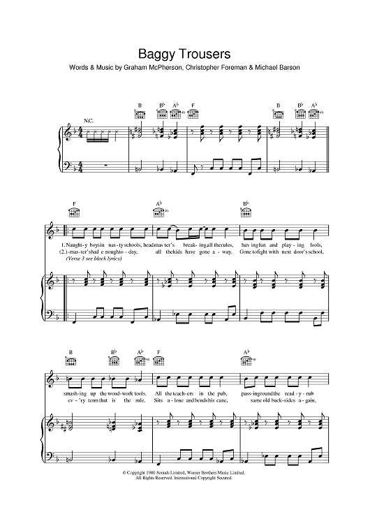 Digital Sheet Music for Baggy Trousers by Mike Barson, Christopher Foreman, Madness, Graham McPherson scored for Piano/Vocal/Chords; id:398155