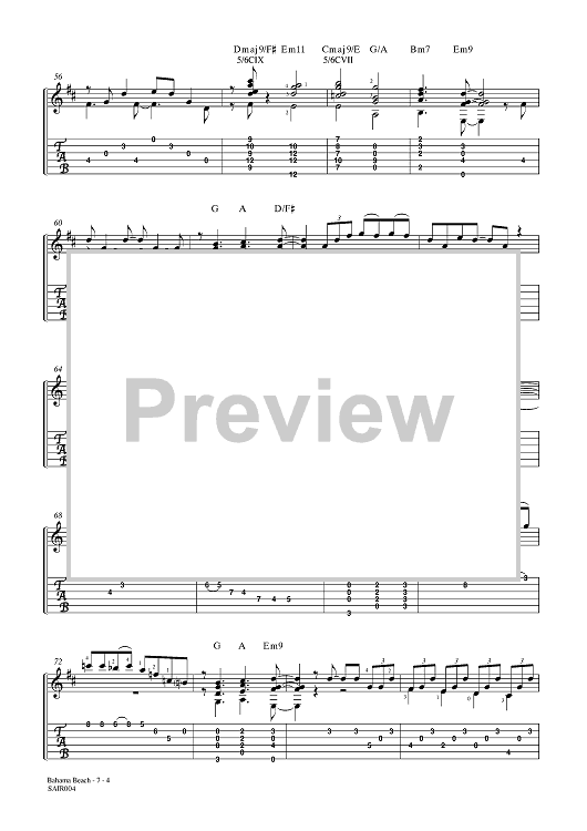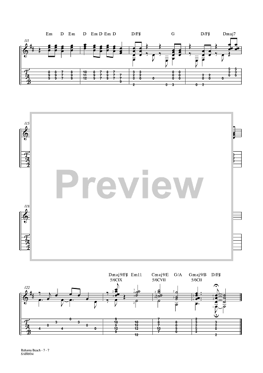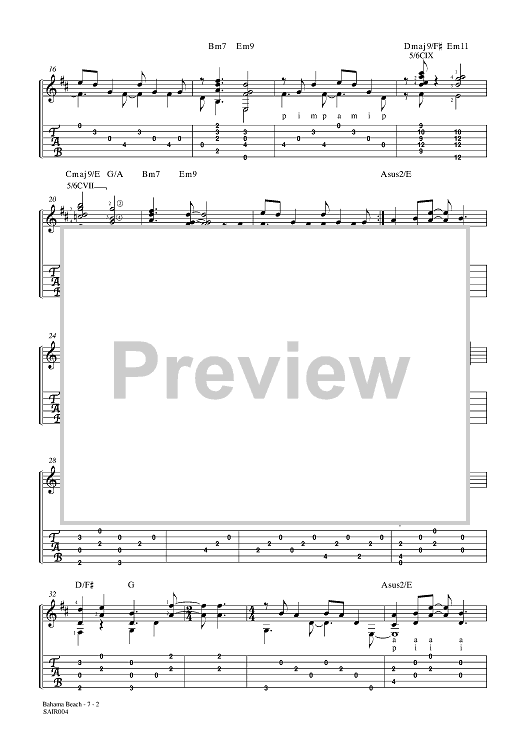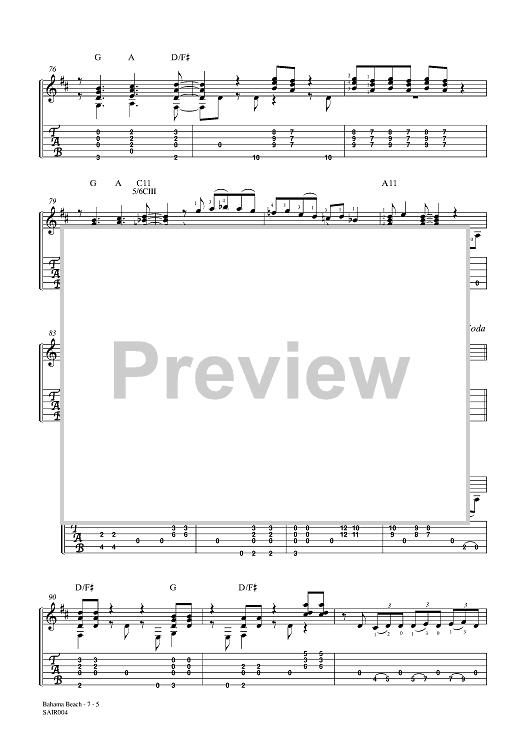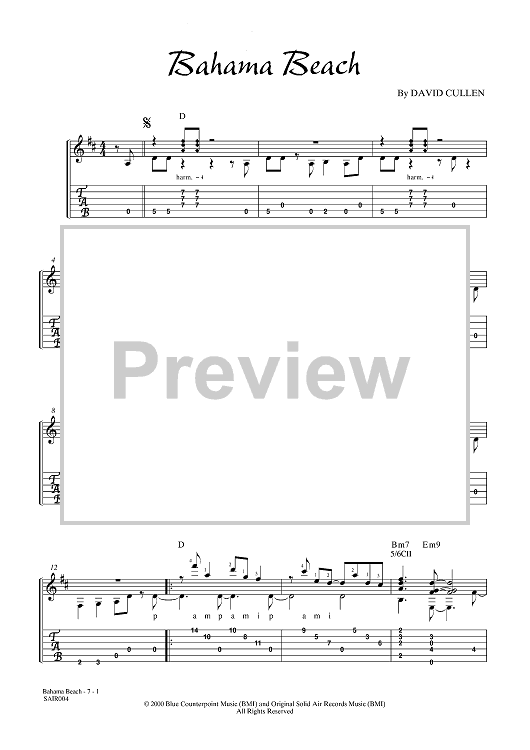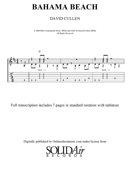 Digital Sheet Music for Bahama Beach (With Embedded Audio) by David Cullen scored for Guitar Tab; id:453125