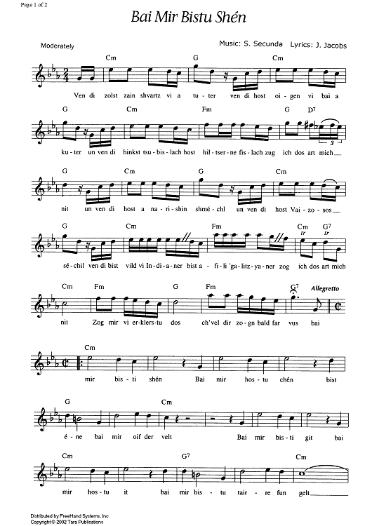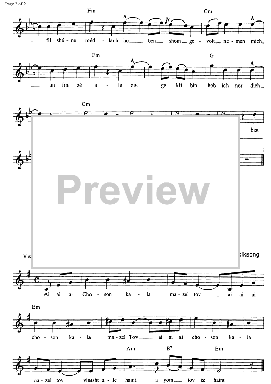 "Bai Mir Bistru Shén / Chosn Kale Mazel Tov - Score" Sheet Music by S. Secunda