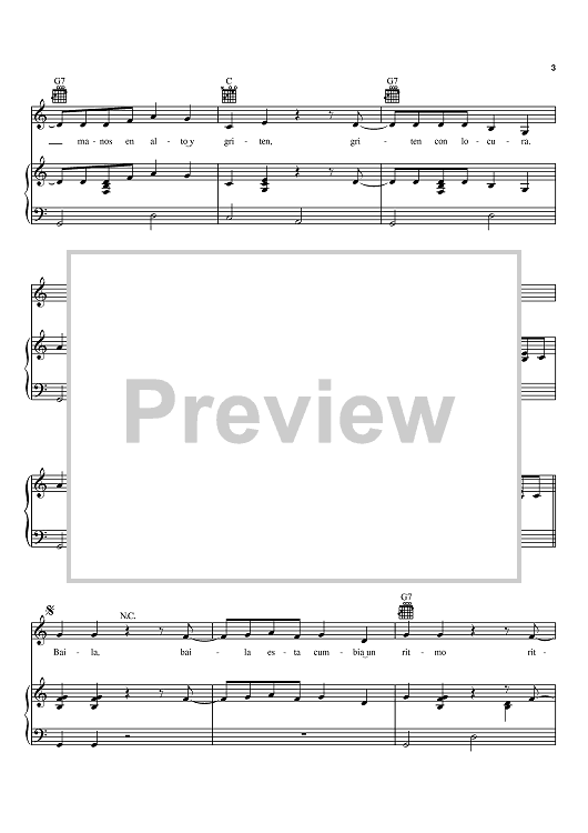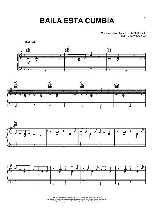 Digital Sheet Music for Baila Esta Cumbia by Pete Astudillo, A.B. Quintanilla III scored for Piano/Vocal/Chords; id:371749