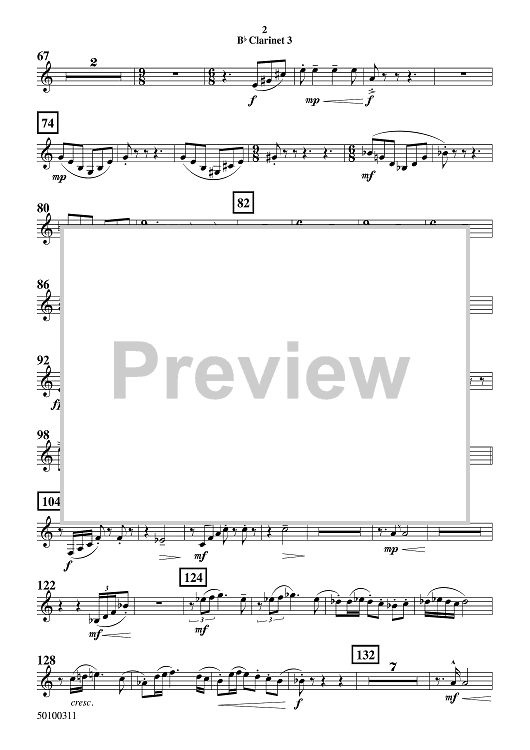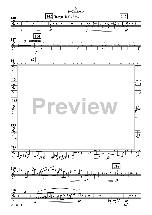 Digital Sheet Music for Baile de Fuego - Bb Clarinet 3 by Randol Alan Bass scored for Symphonic Band; id:509556