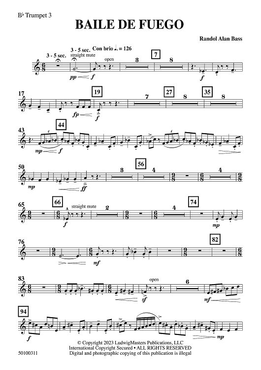 "Baile de Fuego - Bb Trumpet 3" Sheet Music by Randol Alan Bass
