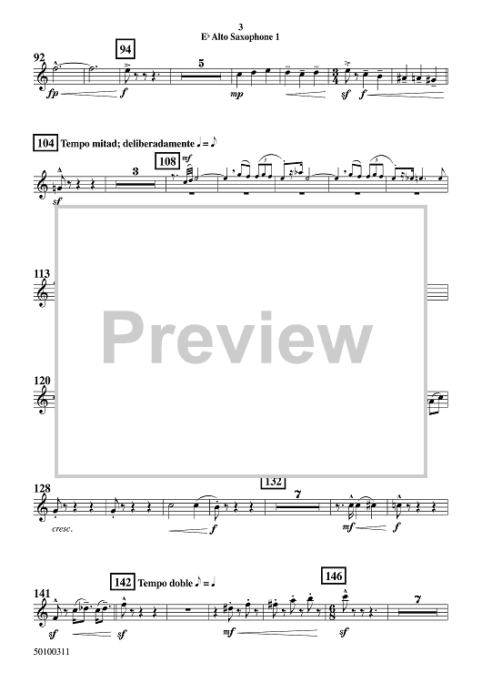 Digital Sheet Music for Baile de Fuego - Eb Alto Saxophone 1 by Randol Alan Bass scored for Symphonic Band; id:509559