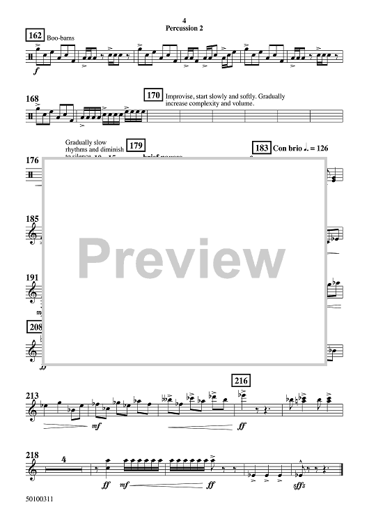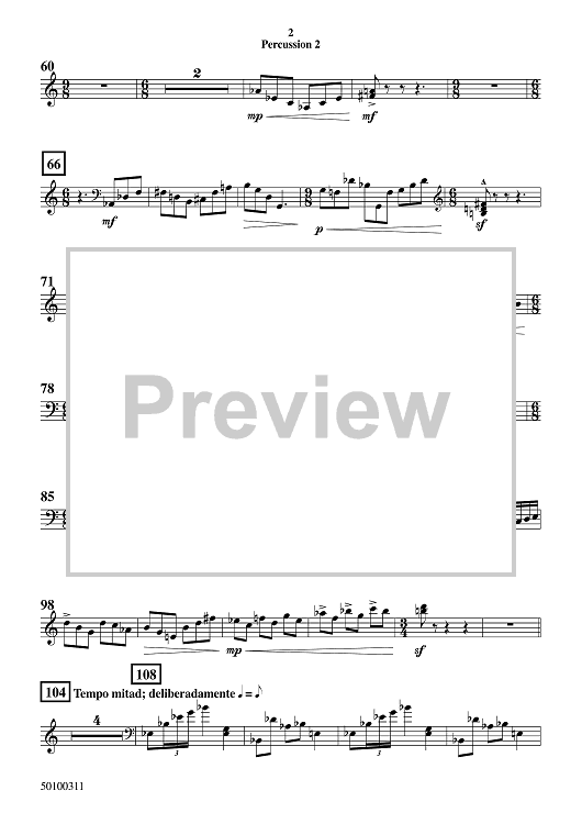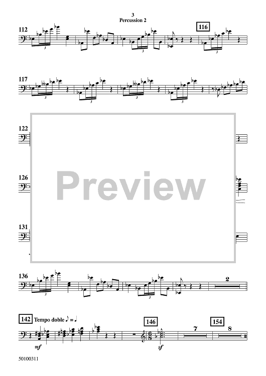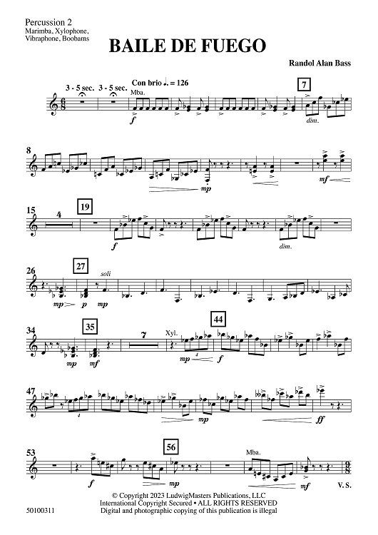 Digital Sheet Music for Baile de Fuego - Percussion 2 by Randol Alan Bass scored for Symphonic Band; id:509577