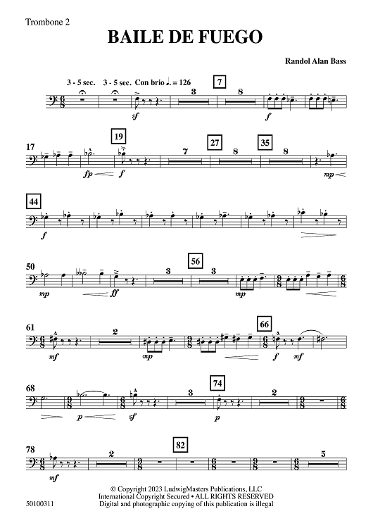 "Baile de Fuego - Trombone 2" Sheet Music by Randol Alan Bass