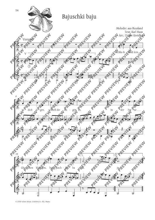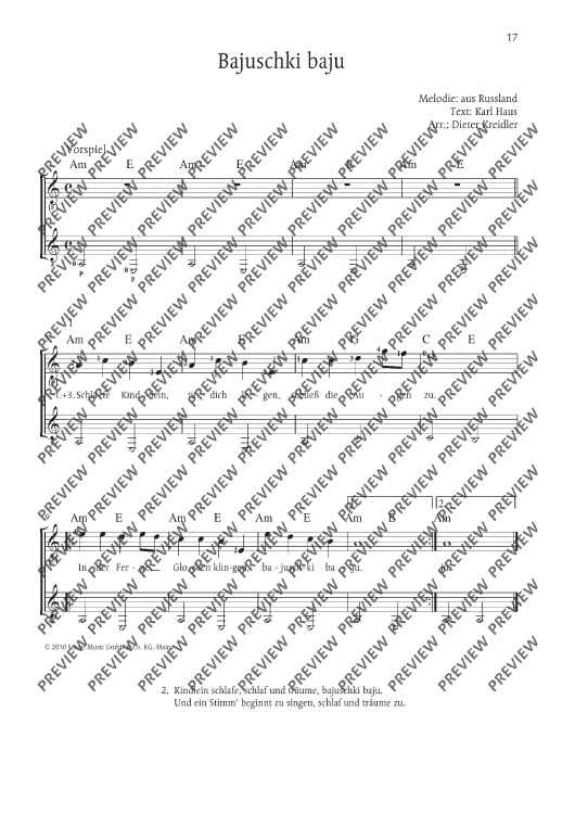 Digital Sheet Music for Bajuschki baju by Dieter Kreidler scored for 1-3 Guitars (melody Instruments In C Ad Lib.); id:481744