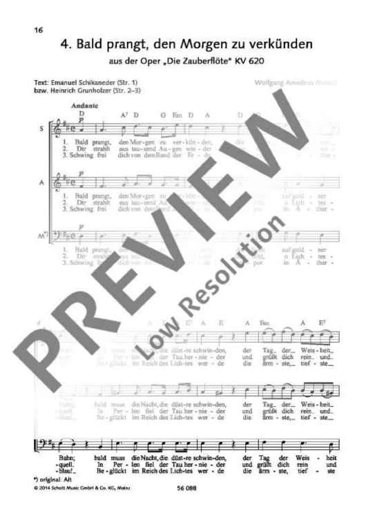 Digital Sheet Music for Bald prangt, den Morgen zu verkünden by Wolfgang Amadeus Mozart scored for Mixed Choir (sabar); id:485905