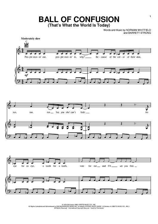 Digital Sheet Music for Ball Of Confusion (That's What The World Is Today) by Norman Jesse Whitfield, Barrett Strong, The Temptations scored for Piano/Vocal/Chords; id:389731