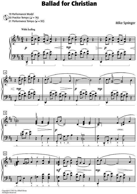 Digital Sheet Music for Ballad for Christian by Mike Springer scored for Piano Solo; id:498176