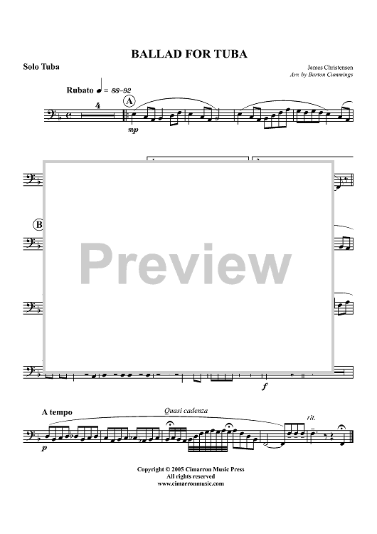 Digital Sheet Music for Ballad for Tuba - Solo Tuba by James Christensen, Barton Cummings scored for Tuba Solo with Brass Choir; id:362652
