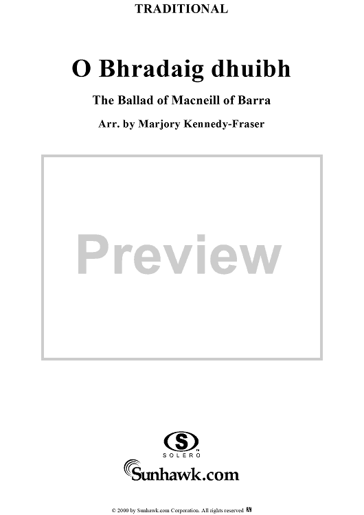 Digital Sheet Music for Ballad of Macneill of Barra, O Bhradaig dhuibh by Marjory Kennedy-Fraser, Traditional scored for Piano/Vocal; id:259559