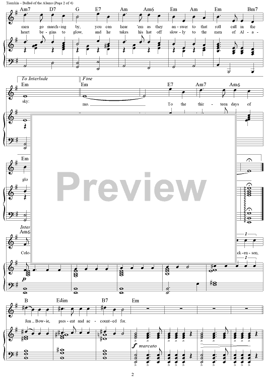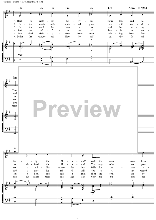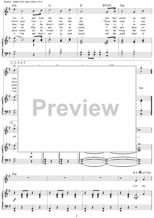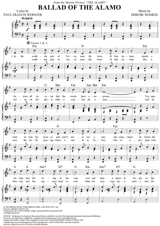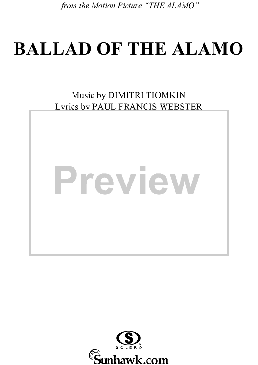 Digital Sheet Music for Ballad of the Alamo by Dimitri Tiomkin, Paul Francis Webster scored for Piano/Vocal/Chords; id:259921