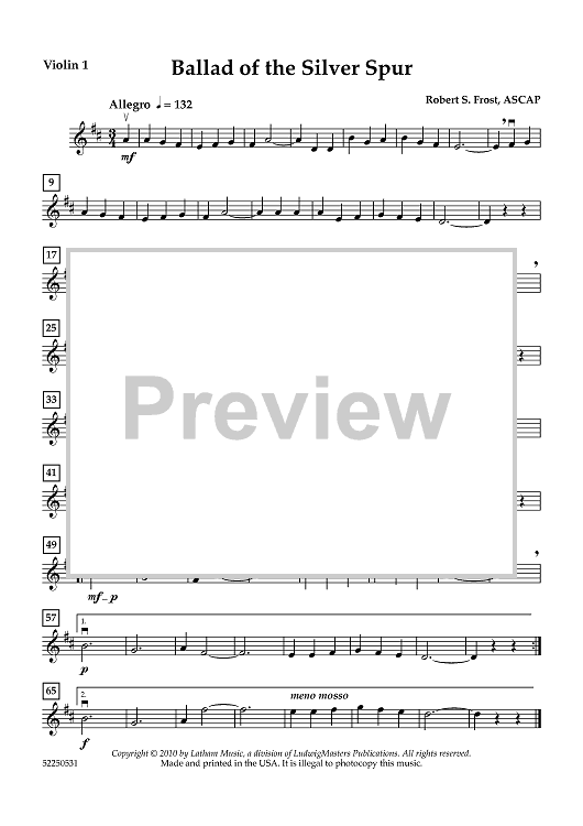 "Ballad of the Silver Spur - Violin 1" Sheet Music by Robert S. Frost