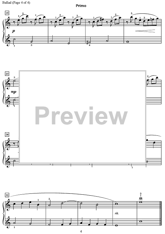 Digital Sheet Music for Ballad by Dennis Alexander scored for 1 Piano, 4 Hands; id:501743