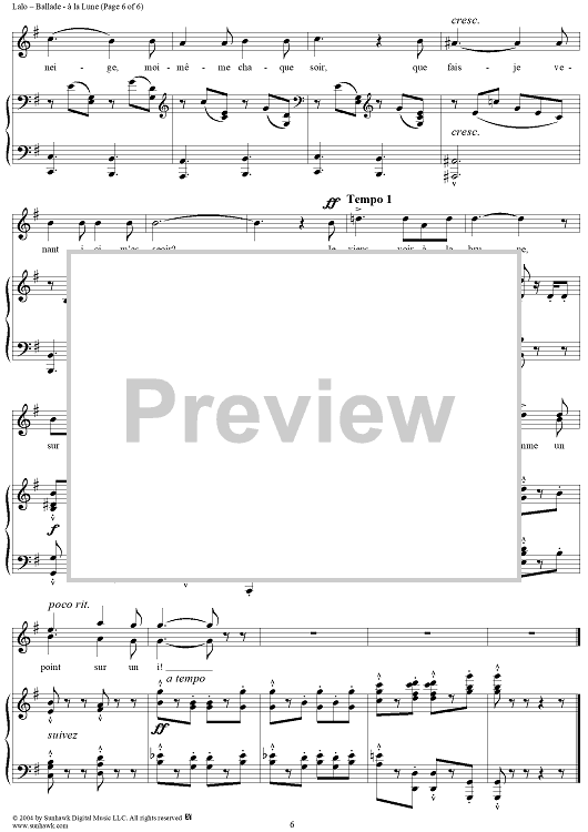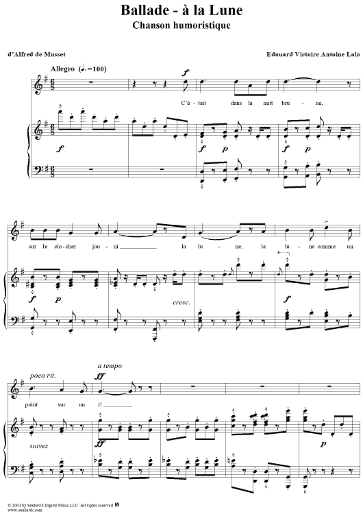 Digital Sheet Music for Ballade à la Lune by Alfred de Musset, Edouard Victoire Antoine Lalo scored for Voice/Piano; id:298175