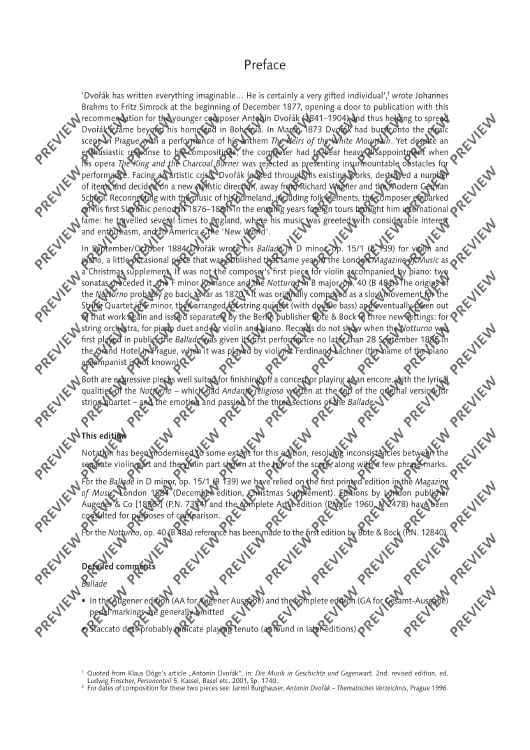 These two works are a selection from among Dvorák's compositions for violin and piano: Ballad and Nocturne, which Dvorák also published for string orchestra.
