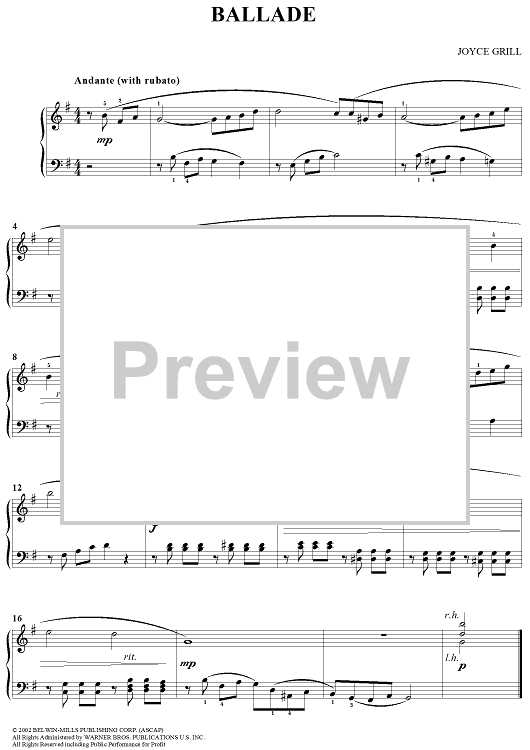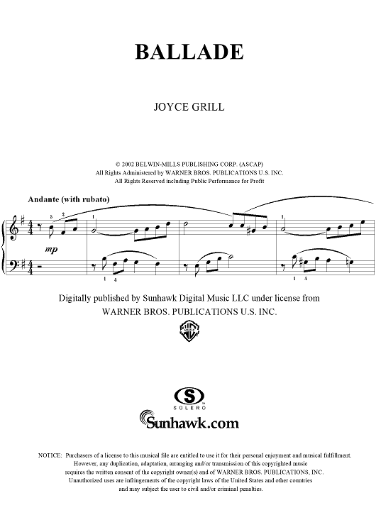 Digital Sheet Music for Ballade by Joyce Grill scored for Piano Solo; id:287217