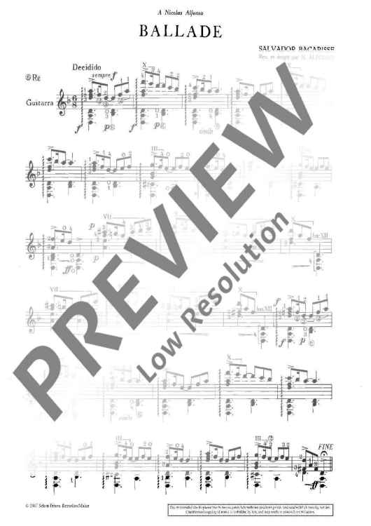 Digital Sheet Music for Ballade by Salvador Bacarisse scored for Guitar; id:476381