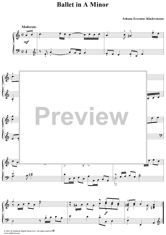 Digital Sheet Music for Ballet in A Minor by Johann Erasmus Kindermann scored for Piano Solo; id:294817