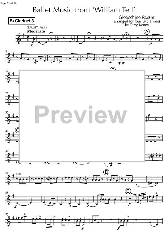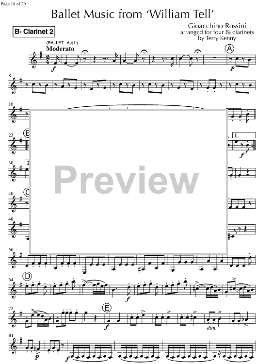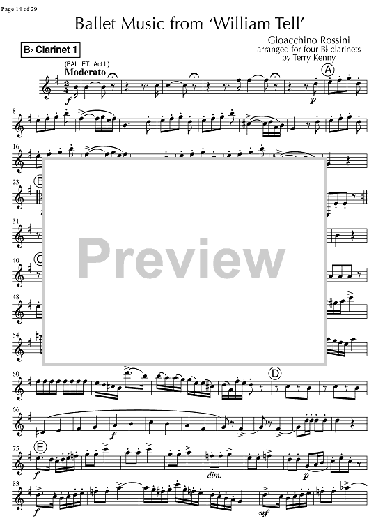 Digital Sheet Music for Ballet Music from William Tell by , Gioachino Rossini, Terry Kenny scored for 4 Clarinets; id:322179