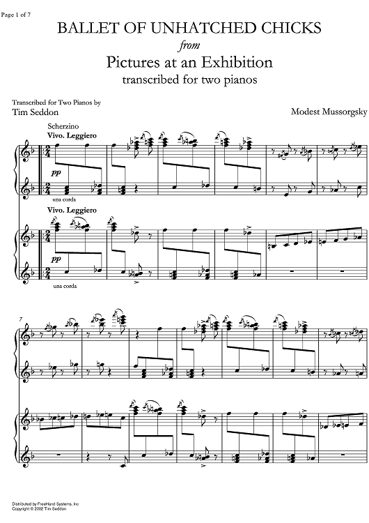 Digital Sheet Music for Ballet of Unhatched Chicks from Pictures at an Exhibition by , Modest Musorgsky, Tim Seddon scored for 2 Pianos; id:337468