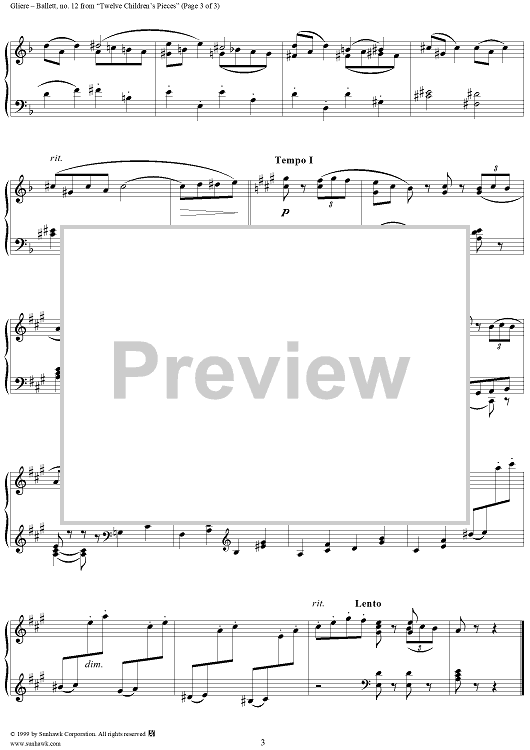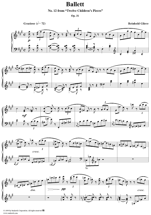 Digital Sheet Music for Ballett - No. 12 from "Twelve Children's Pieces" Op. 31 by Reinhold Glière scored for Piano Solo; id:268050