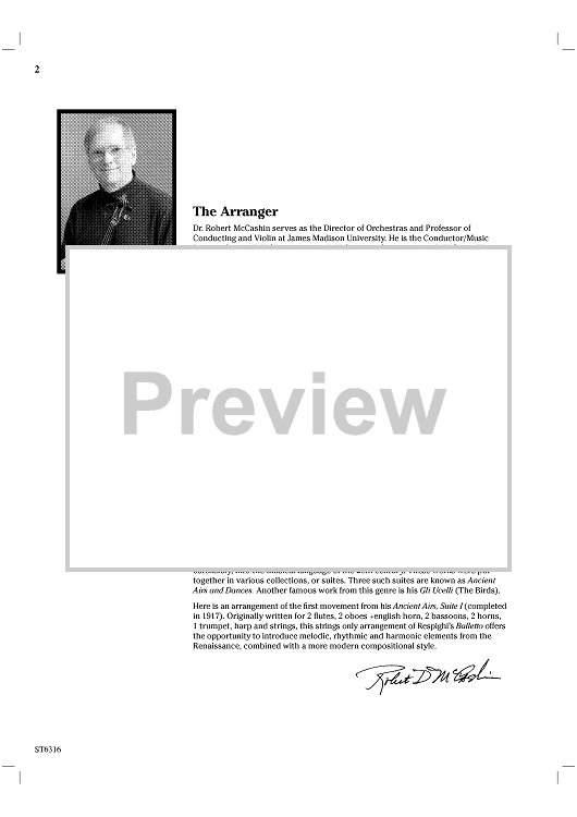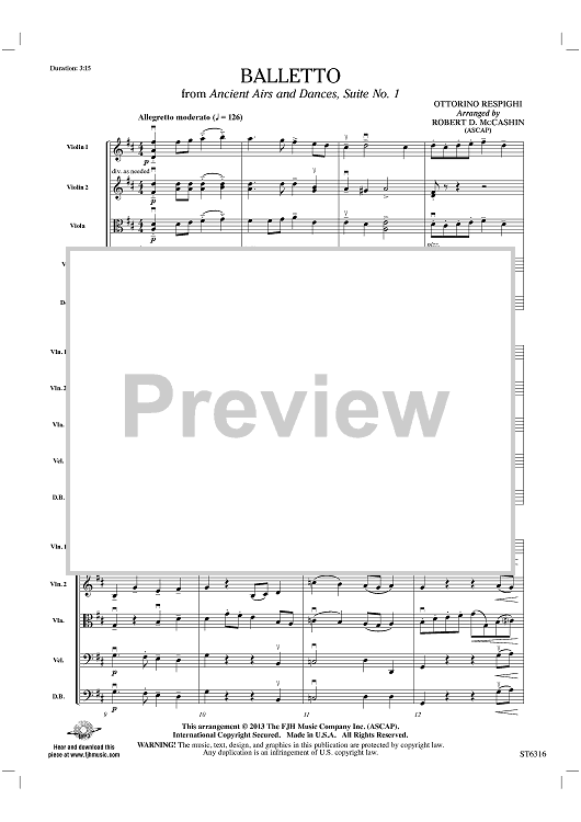 Digital Sheet Music for Balletto from Ancient Airs and Dances, Suite No. 1 - Score by Ottorino Respighi, Robert D. McCashin scored for String Orchestra; id:437024