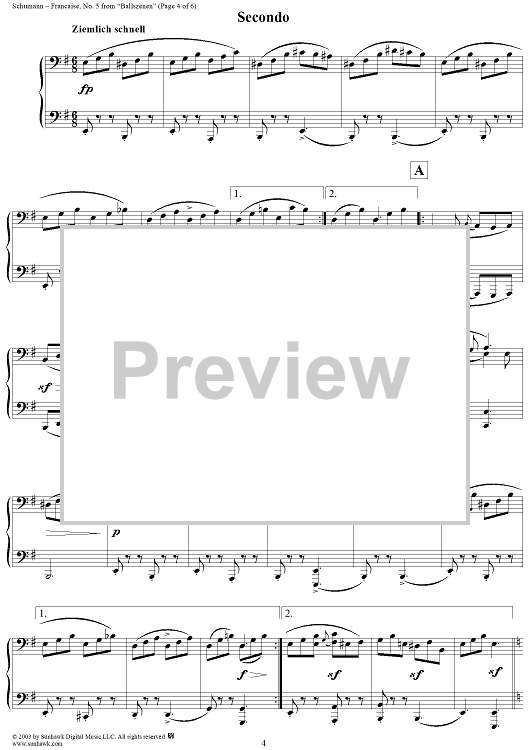Digital Sheet Music for Ballszenen, No. 5: Française by Robert Schumann scored for 1 Piano, 4 Hands; id:294474