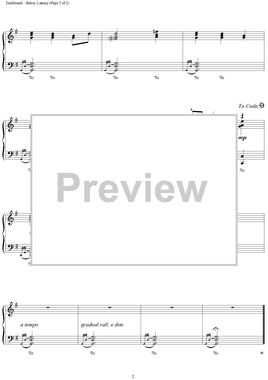 Digital Sheet Music for Baloo, Lammy by Michael Scott, Traditional scored for Piano Solo; id:260399