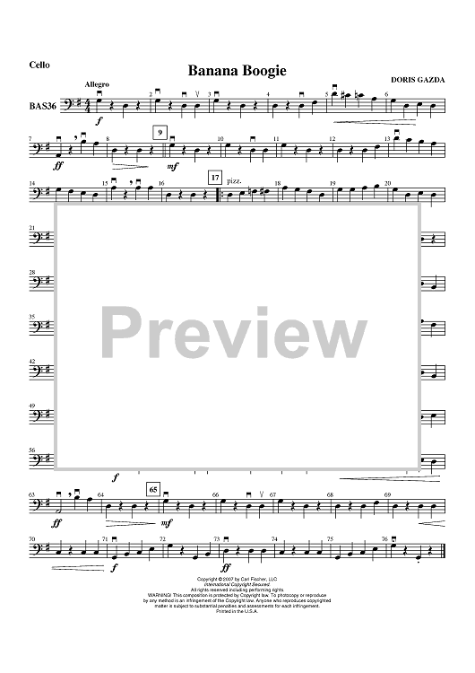 "Banana Boogie - Cello" Sheet Music by Doris Gazda