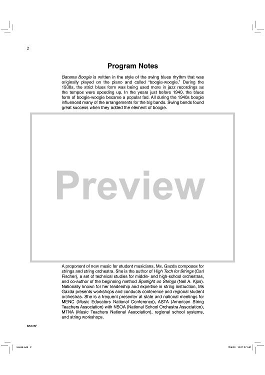Digital Sheet Music for Banana Boogie - Score by Doris Gazda scored for Orchestra; id:407993