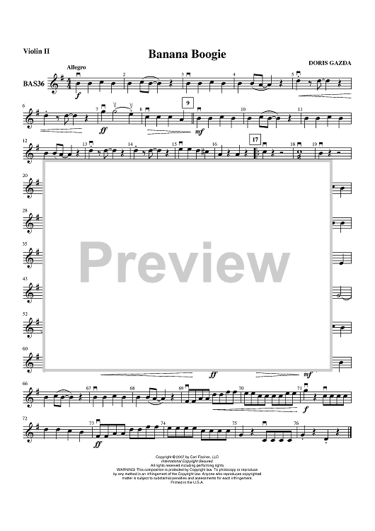 Digital Sheet Music for Banana Boogie - Violin 2 by Doris Gazda scored for Orchestra; id:407995