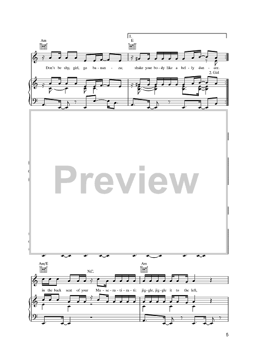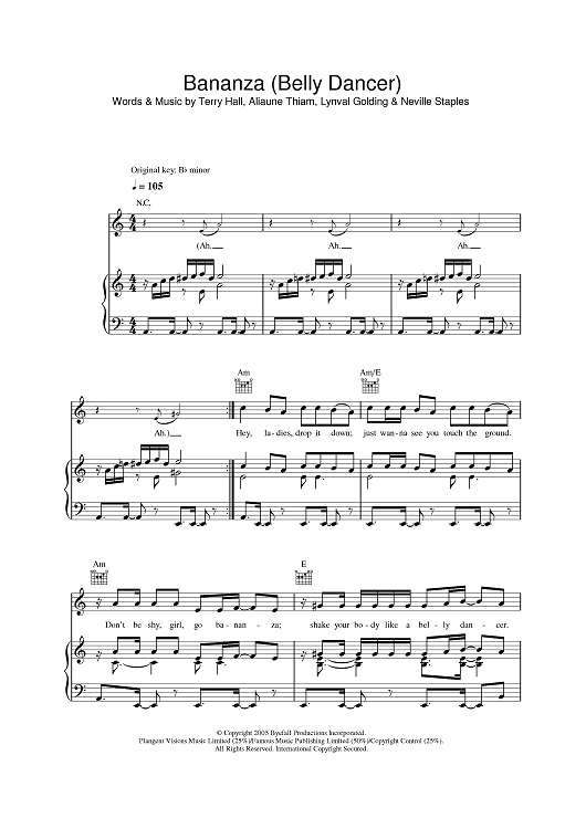 Digital Sheet Music for Bananza (Belly Dancer) by Terry Hall, Akon, Lynval Golding, Neville Staples scored for Piano/Vocal/Chords; id:386595