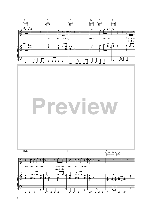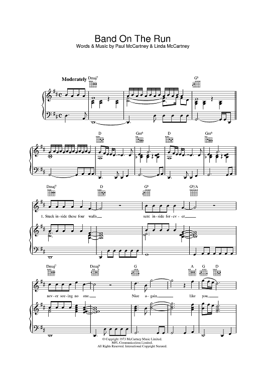 Digital Sheet Music for Band On The Run by Paul McCartney, Linda McCartney scored for Piano/Vocal/Chords; id:390360