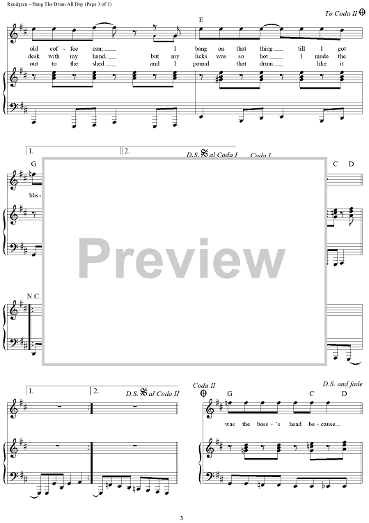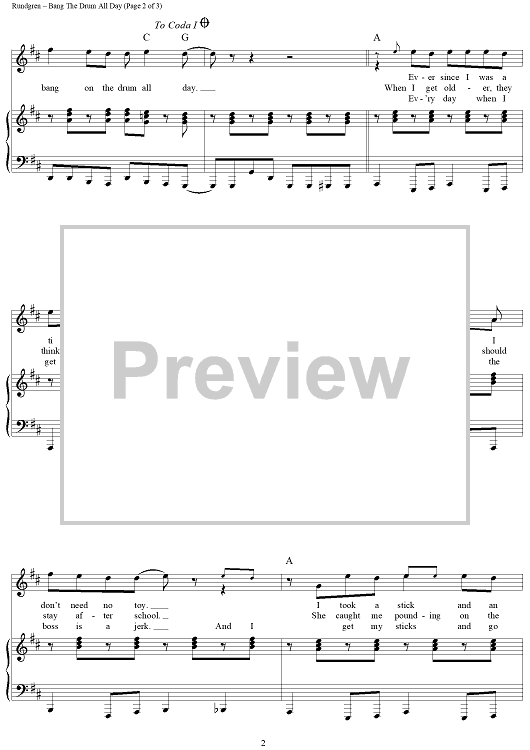 Digital Sheet Music for Bang The Drum All Day by Todd Rundgren scored for Piano/Vocal/Chords; id:457684