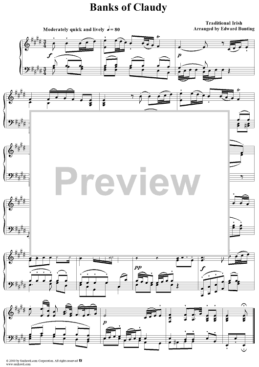 Digital Sheet Music for Banks of Claudy by , Edward Bunting, Traditional scored for Piano Solo; id:234871