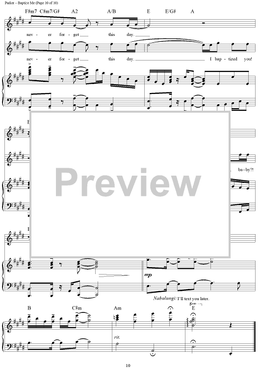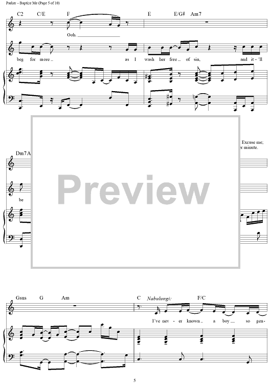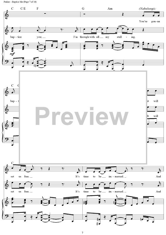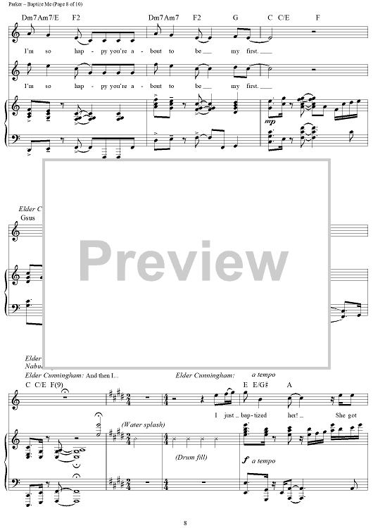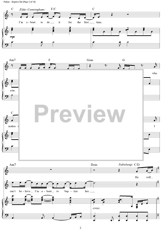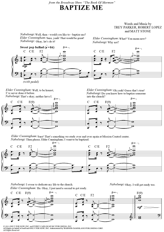 Digital Sheet Music for Baptize Me by Robert Lopez, Trey Parker, Matt Stone, Stephen Oremus scored for Piano/Vocal/Chords; id:430181