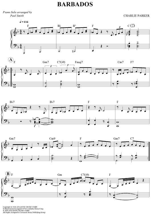 Digital Sheet Music for Barbados by Charlie Parker, Paul Smith scored for Piano Solo; id:443677
