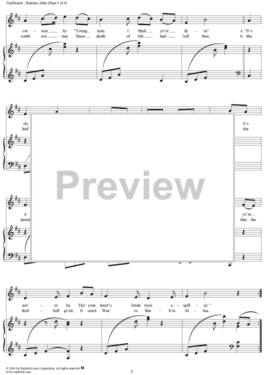Digital Sheet Music for Barbara Allan by Traditional scored for Piano/Vocal; id:258749