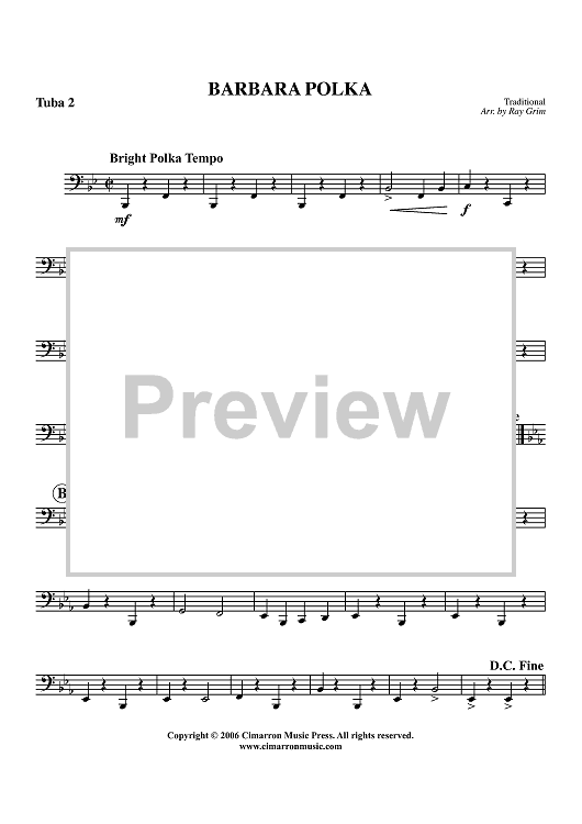 Digital Sheet Music for Barbara Polka - Tuba 2 by Ray Grim, Traditional scored for Tuba Quartet; id:356563