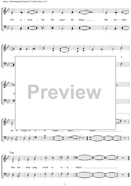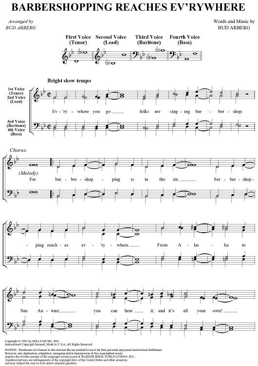 Digital Sheet Music for Barbershopping Reaches Ev'rywhere by Bud Arberg scored for Barbershop Quartet; id:235762