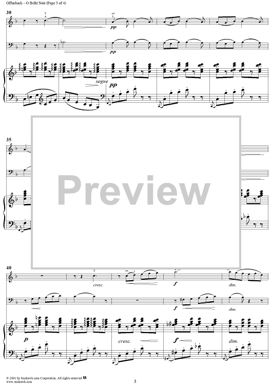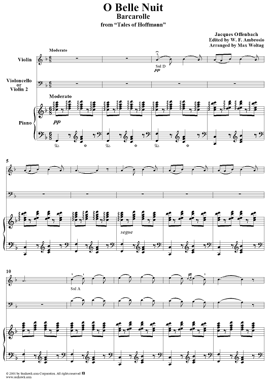 Digital Sheet Music for Barcarolle (O Belle Nuit), from "The Tales of Hoffmann" by Jacques Offenbach scored for Piano Trio; id:265474