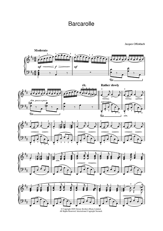 Digital Sheet Music for Barcarolle by Jacques Offenbach scored for Piano; id:388087