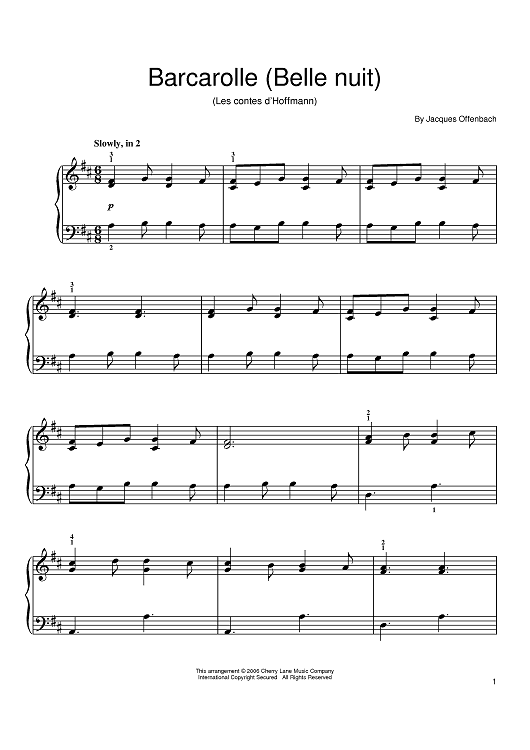 Digital Sheet Music for Barcarolle by Jacques Offenbach scored for Easy Piano; id:391262