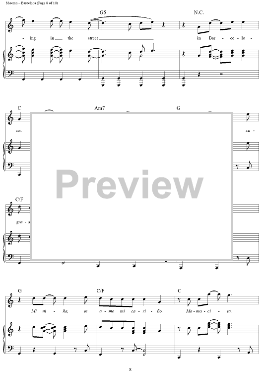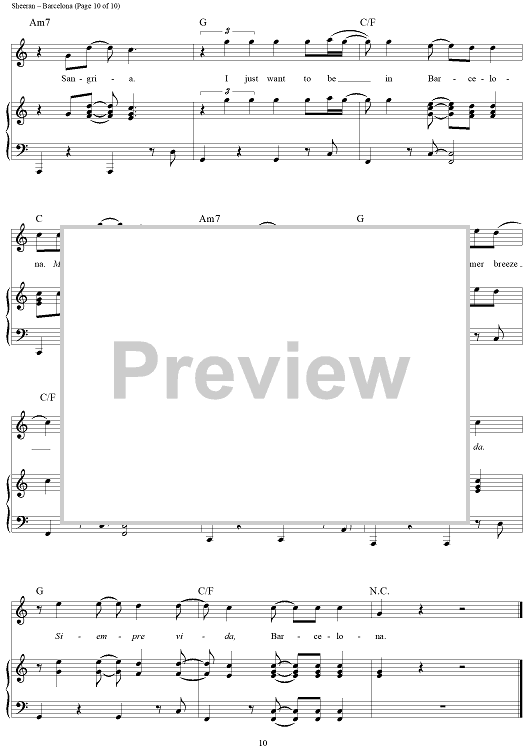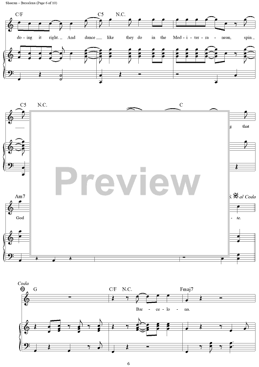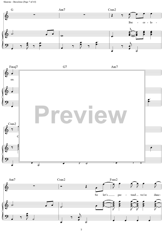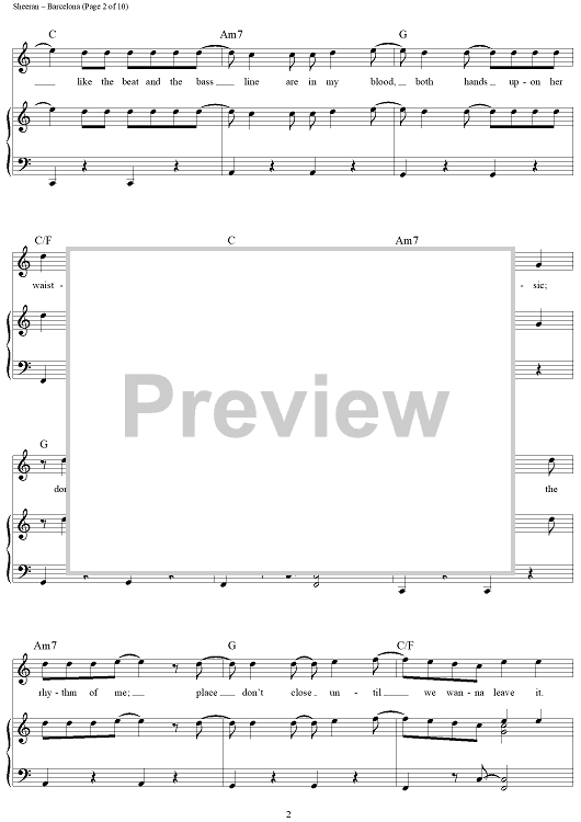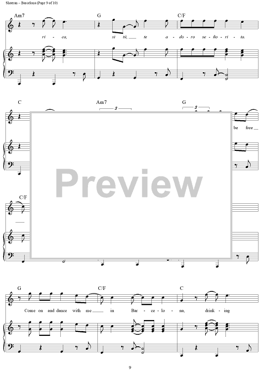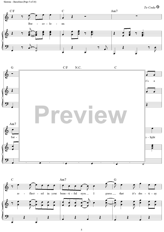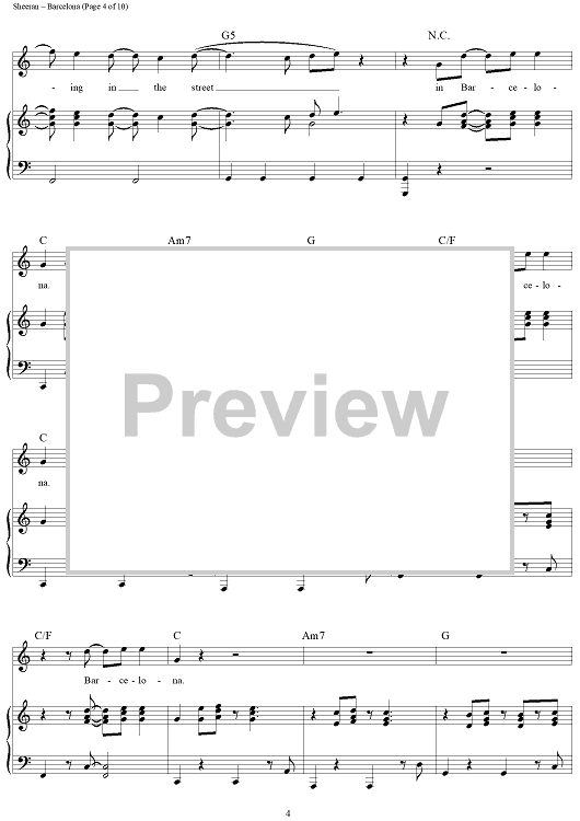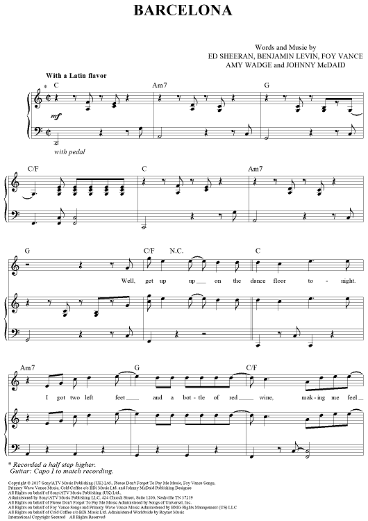 Digital Sheet Music for Barcelona by Ed Sheeran, John McDaid, Amy Wadge, Foy Vance scored for Piano/Vocal/Chords; id:464613