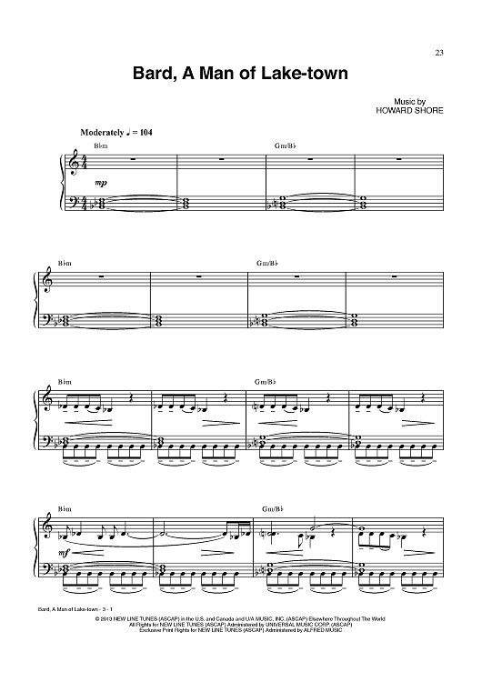 "Bard, A Man of Lake-town" Sheet Music by Howard Shore